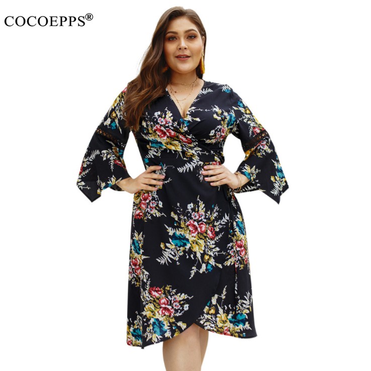 Big Size Vintage Women Plus Size Print Floral Dress Oversize Casual Loose Office Lady Maxi Dress Shopee Philippines