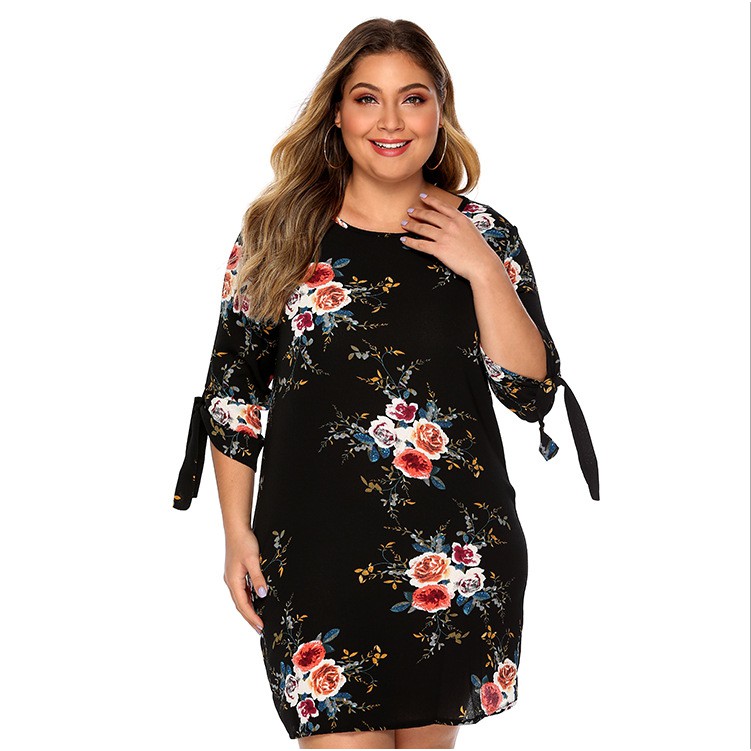 Fashion Women S Fat Mm Printed Casual Dress Plus Size Shopee Malaysia